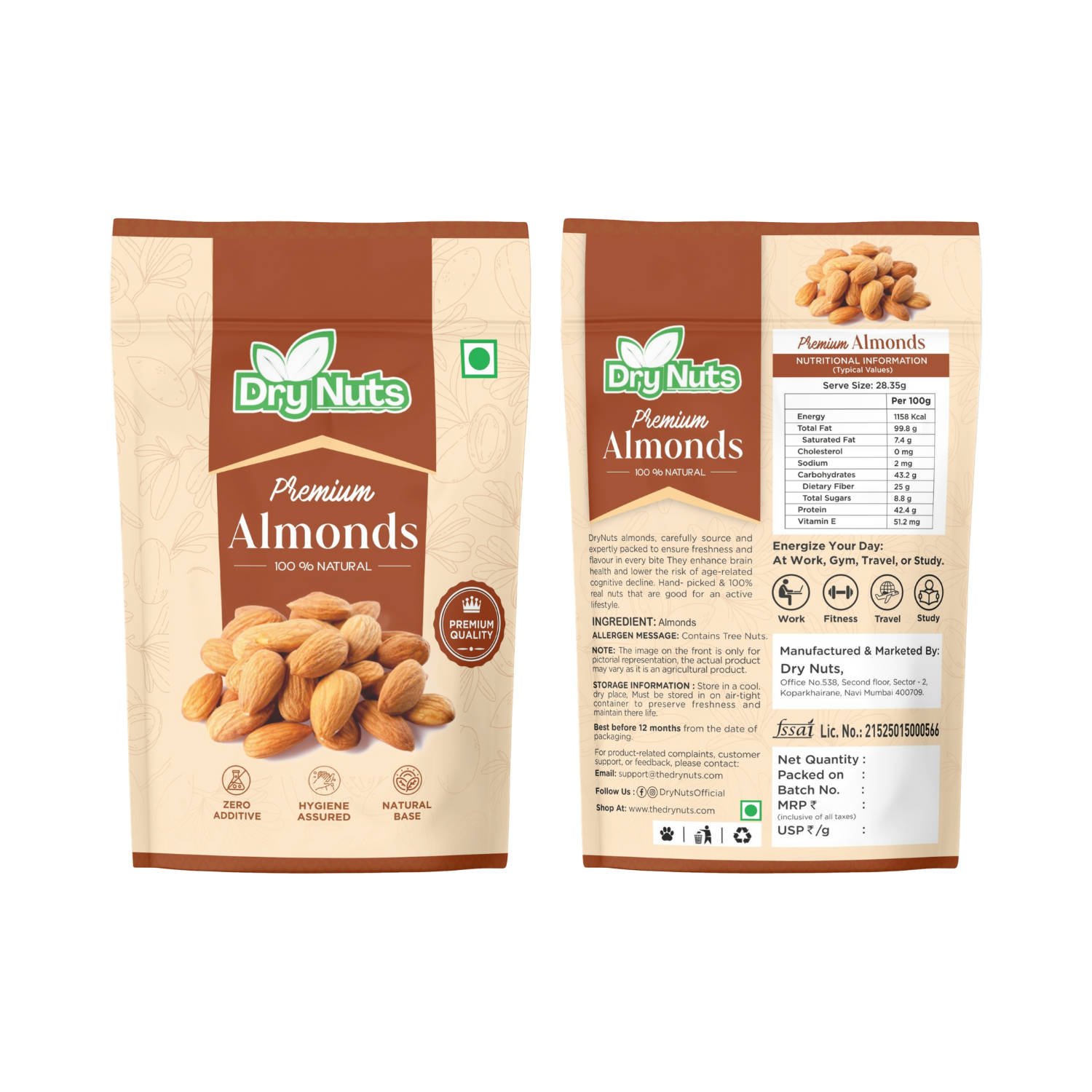 - Multiple Pack Sizes- – Almond 250 gm price, Almond 500 gm price, Almond price 1kg available